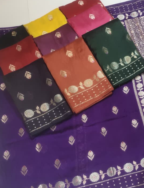 We bring you an exclusive collection of pure silk, organza, georgette, and tissue Banarasi sarees — each piece a masterpiece of artistry, heritage, and luxury.