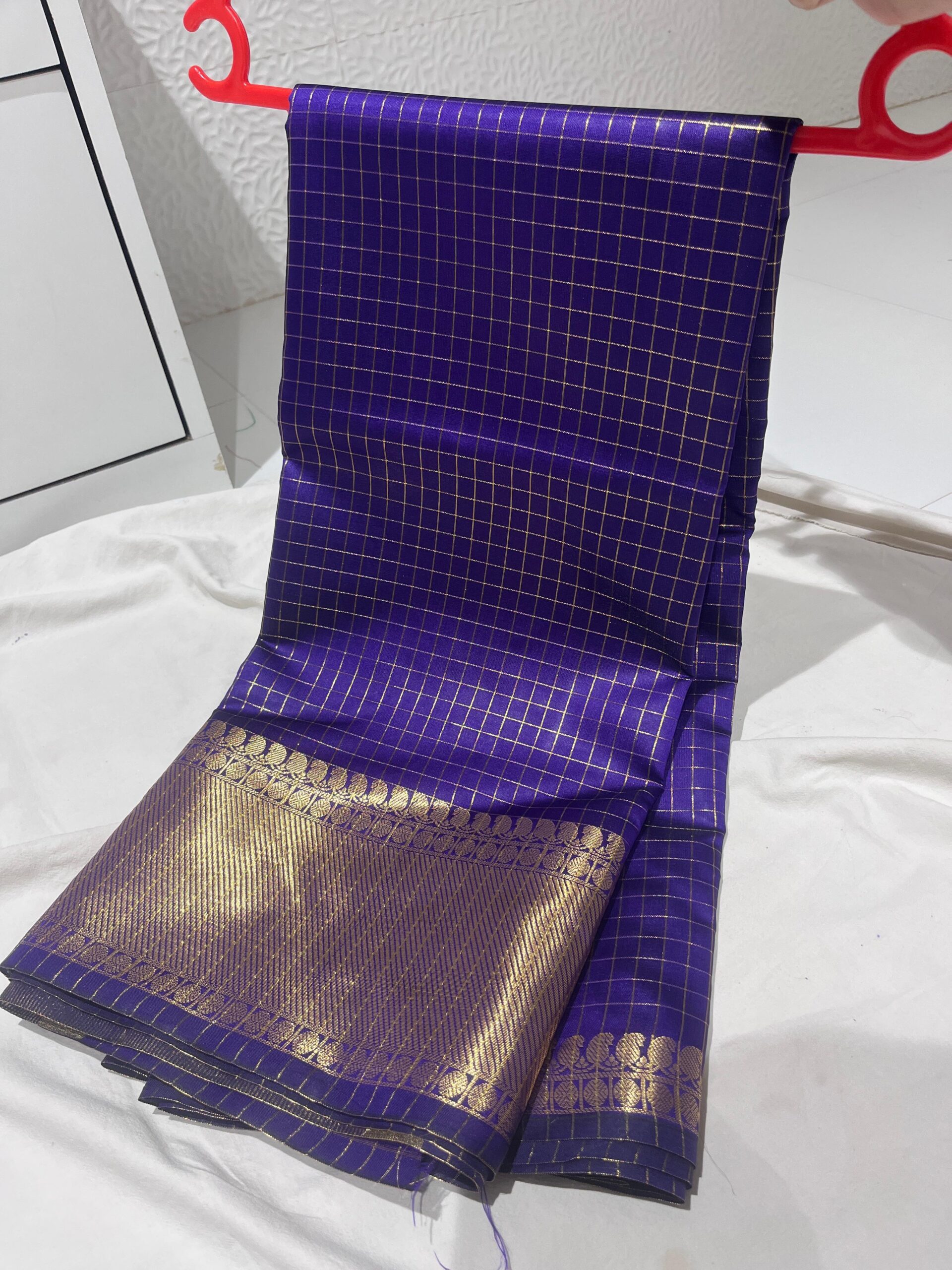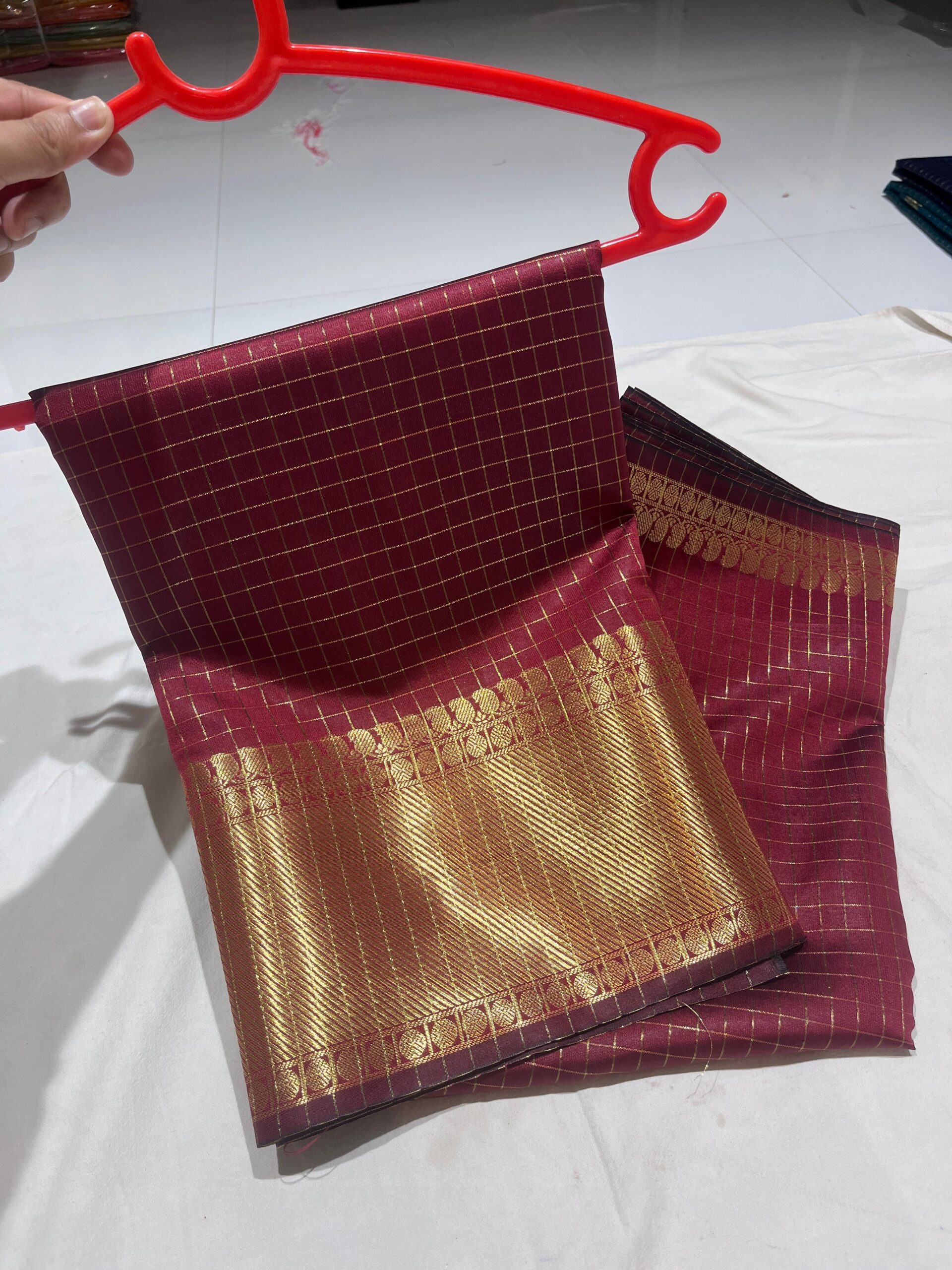 - Fabric: Velvet-finish Banarasi silk (feels like malmal)