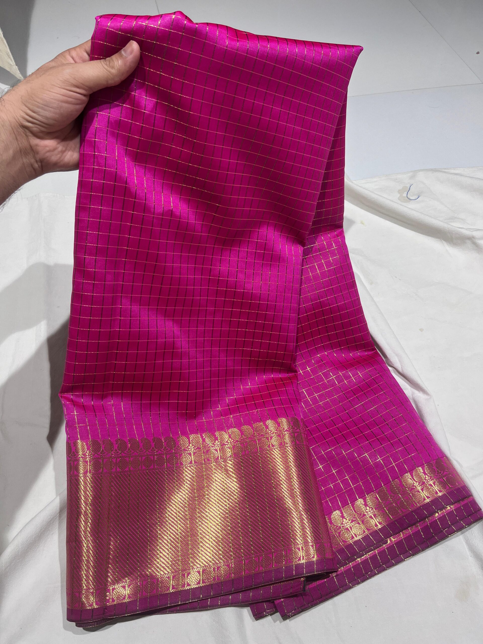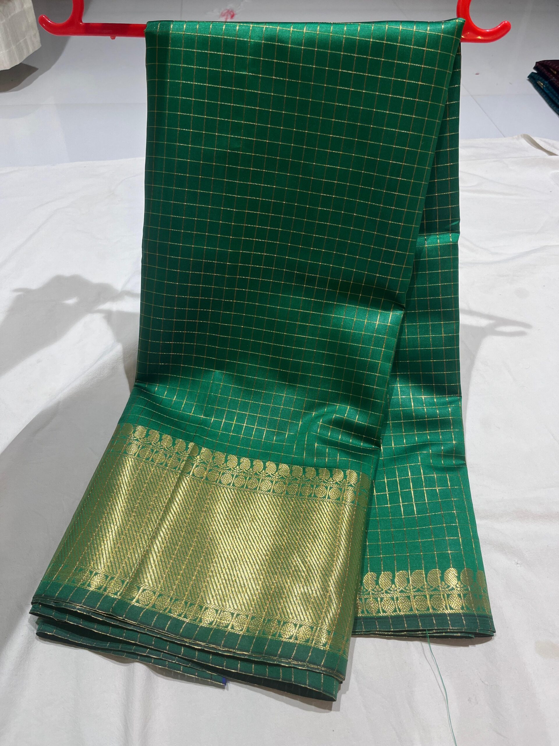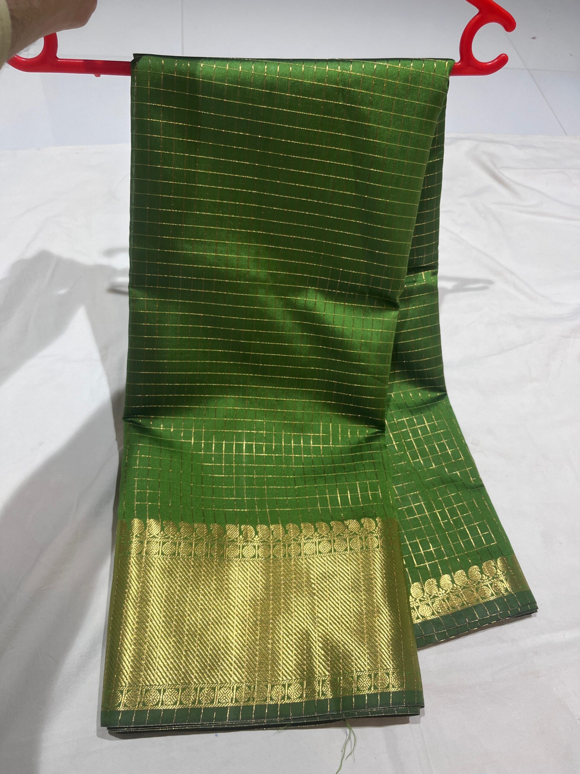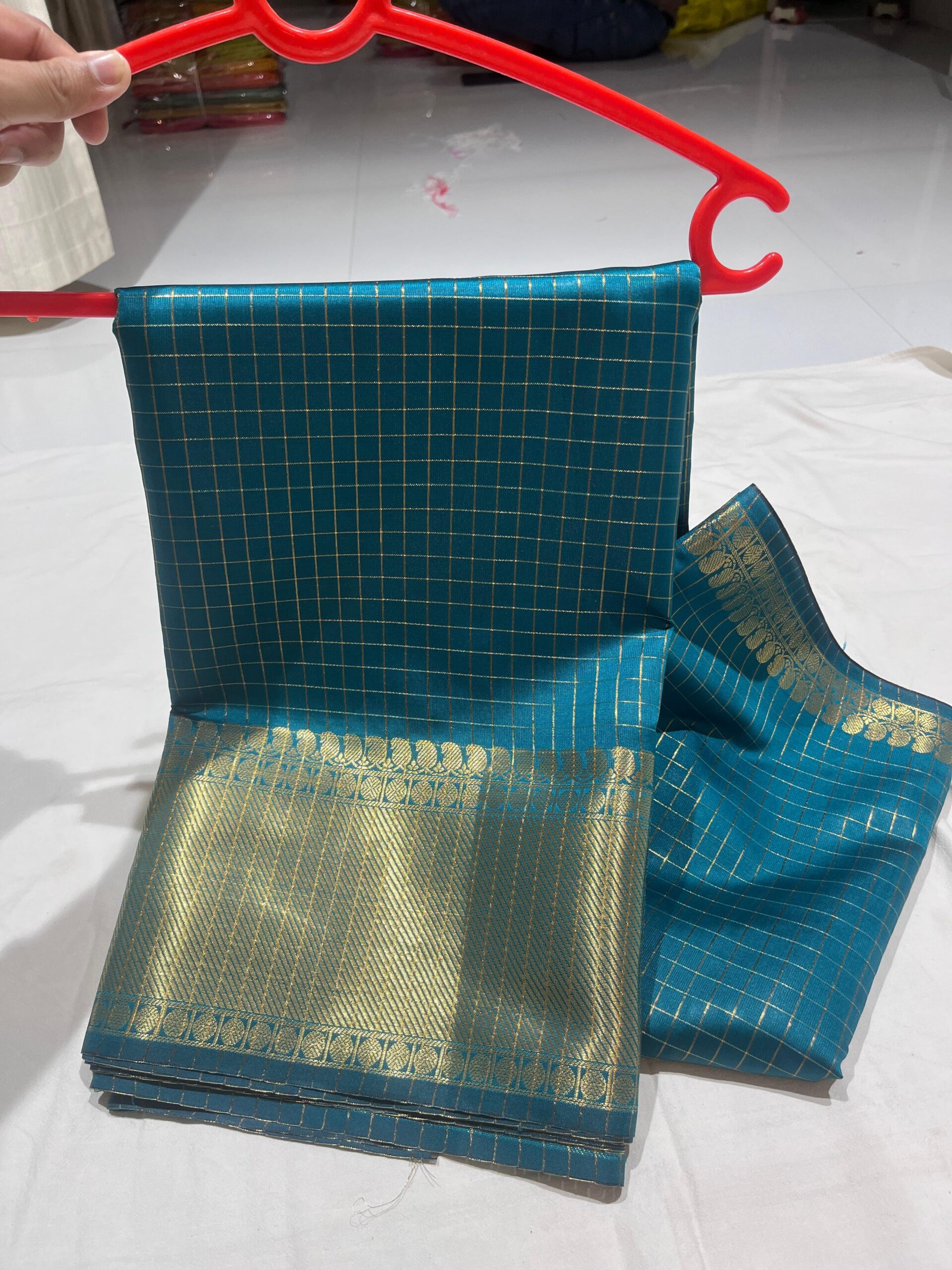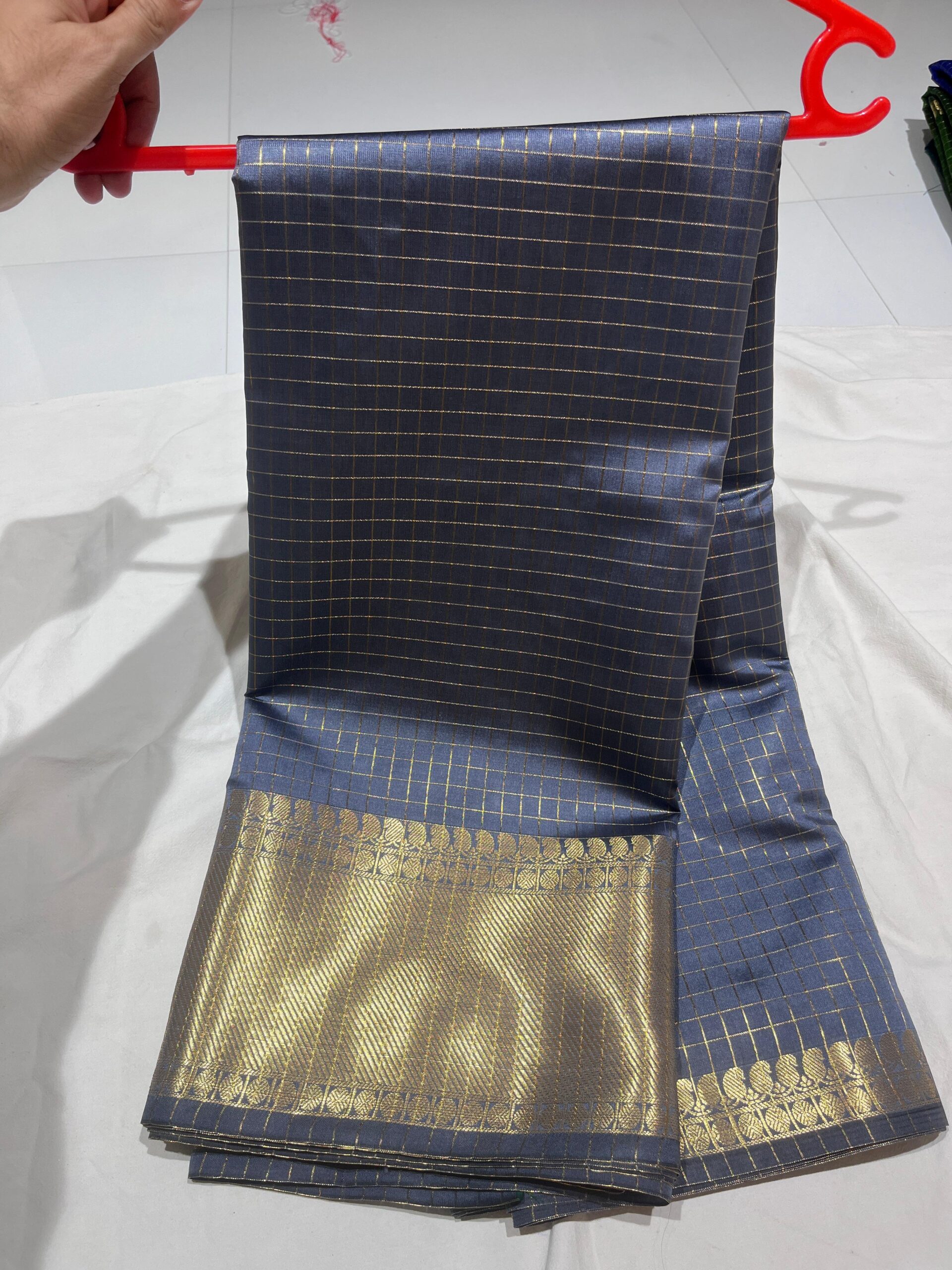 - Border: Contrast matching, classic Banarasi zari border